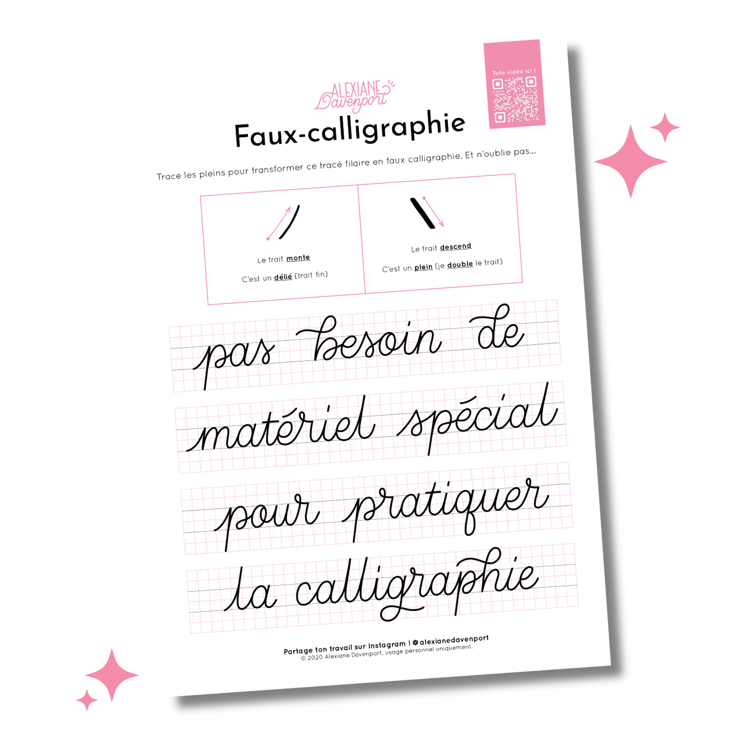 Une fiche d'entraînement à imprimer pour s'exercer à la faux calligraphie. Idéale quand on a pas de matériel spécial.